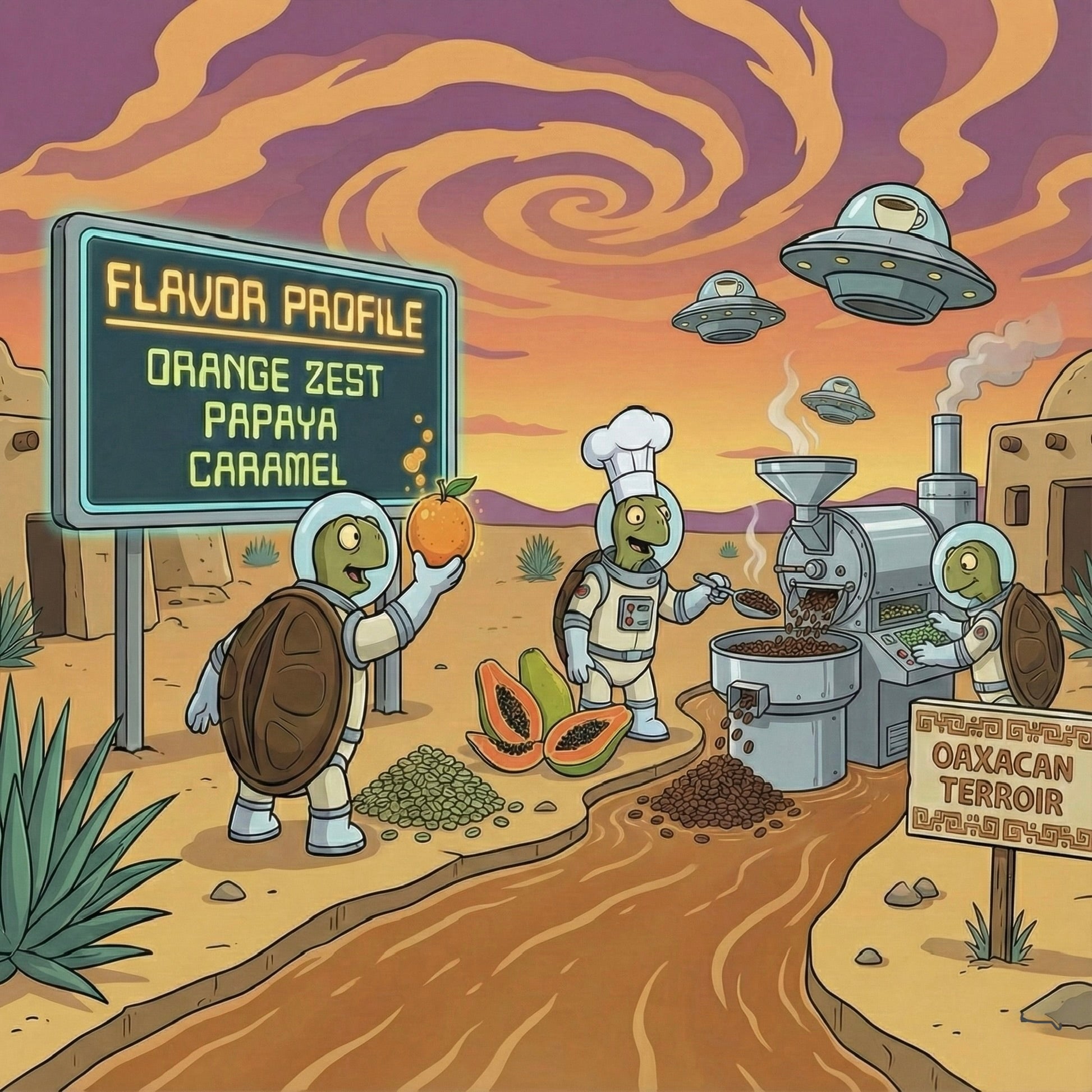 Nestled in the lush Sierra Norte mountains of Oaxaca, Mexico, this seasonal single origin celebrates the work of smallholder farmers from San Pedro Ayacaxtepec. Grown between 1000–1600 masl and fully washed for clarity, this cup shines with notes of orange zest, papaya, and caramel—a vibrant yet grounded profile that captures the essence of Oaxacan terroir.